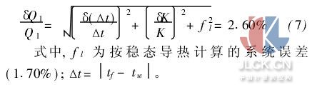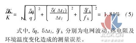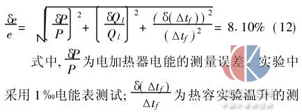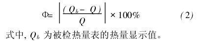 E可以用1‰或准确度更高的电能表测定。所以在上式三项数值中,只要能准确测量出漏热损失和水箱内水的内能变化,就可以准确的知道散热装置所散发的热量。热量表的读数实际上反映了散热装置所散发的热量。如果对散热装置所散发的热量Q计量准确,则可得到热量表的最大误差值Φ:
