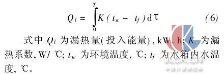 改变投入的热量,依次得到不同的稳定热平衡状况,从而求出水箱的漏热系数。根据多次测定,确定其漏热系数为:0·451W/℃。当水箱内水温为94℃左右,室内温度在26℃,其水箱漏热量为30·7W。