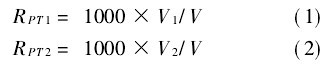 温度的测量是通过测定Pt1000的电阻值来计算的。当模拟开关MAX4582的A=0,B=1时,选通温度传感器PT1,对应的AD转换值为V1;A=1,B=0时,选通温度传感器PT2,对应的AD转换值为V2;A=0,B=0时,选通标准校准电阻R2,对应的AD转换值为V。此时PT1和PT2的阻值分别为: