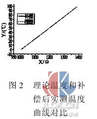 根据阻值计算温度有两种方法。其一,根据式(3)进行温度计算,求解二阶方程式的解。此方法虽然需要进行开平方运算,程序复杂,但是占用存储器空间小;其二,利用查表和线性插值法进行温度标度变换,计算简单,但是需要占用大量存储器空间。两种方法在实际应用中都是可行的,都能满足温度测量的精度要求,可根据实际情况在速度和存储容量之间取舍。