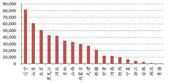 图3:2011中国主要省份城市供暖面积(万平方米)