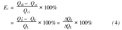 式中:Q′L为热能表累积流量;QL为标准累积流量,ΔQL为热能表累积流量误差。其中ΔQL由两部分组成,一部分由流量计的实际误差引起,这部分对热能表造成的误差影响是实际存在的,是热能表实际误差的一部分。另一部分由流量传感器的脉冲当量所引起的,它是虚误差,它对热能表的长期使用不会造成误差影响。但对时间有限的检定而言,对检定结果的影响却是不容忽视的。流量脉冲当量为热能表采集一个流量传感器脉冲信号所代表的累积流量的多少,由式(2)可以看出,热能表的累积流量是阶梯式递增的。现只考虑式(4)中脉冲当量对检定结果Ei的影响,假设流量脉冲当量为α/脉冲,则检定时,前后截取热量段值时,最大可引起一个脉冲当量值的流量误差,即ΔQL=α,其引起的热能表的相对误差为:Ei=α/QL×100%,可见此误差将随QL的增大而减小,即随检定用水量的增加而减小,只有在QL增大到一定程度时,此项误差才可以减小到可以忽略的程度,所以尽管检定规程中没有明确规定各点检定用水量,但我认为检定用水量不宜太少,一般可参考水表检定规程中对检定用水量的规定。另外,也可以看出α越小,Ei越小,消除此项影响所需的用水量也越少,所以用水量的多少还要根据热能表具体的脉冲当量值作适当选取。例如,脉冲当量值为1L/脉冲引起的误差将会是脉冲当量值为0.1L/脉冲的10倍,所以达到同一影响时,前者的用水量必须是后者的10倍。所以作为生产厂家来讲,应该选取较小的流量脉冲当量为好。