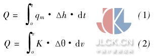 式中:Q为热能值;qm为传热介质的质量流量;Δh为入口和出口处温度对应的传热介质的比焓值差;t为时间;V为介质流过的体积;K为热系数;Δθ为入口和出口处介质的温度差。