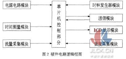 根据系统设计整体要求,按模块化的电路设计思想,本热量表的硬件系统以单片机和外围功能电路组成,硬件电路逻辑框图如图 2 所示。
