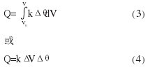 式中:k———热量系数, 热介质(水)成分的参数, 是热介质处于实际温度时的函数;ΔV———流量传感器测量热介质流过热循环系统的体积