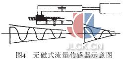 原理: 阻尼振荡电路如图4所示,电路由电感和电容组成, 电感下方为旋转的叶轮, 其上镶有半圆形金属膜片, 当叶轮旋转时, 电感产生有阻尼和无阻尼振荡, 借以产生计数信号,以实现流量的测量。
